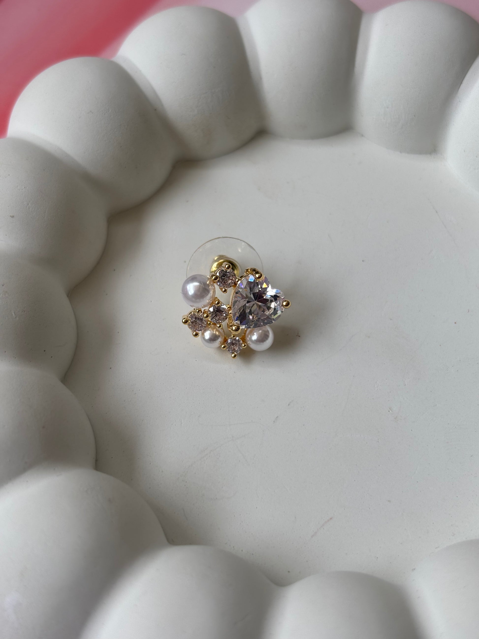 AD heart with pearls and stones studs earrings