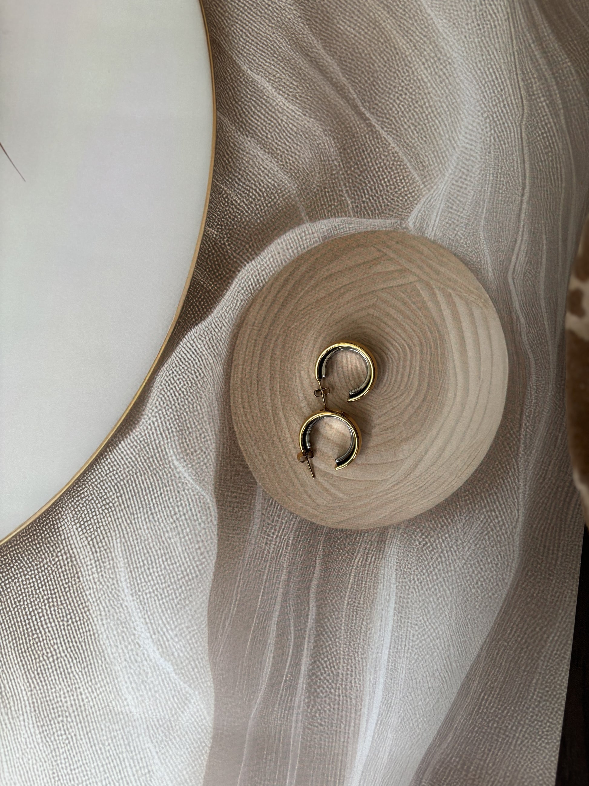 These round, dual-tone half hoop earrings feature an anti-tarnish finish, making them ideal for everyday casual wear. Measuring 2.1 by 1.3 cm, they combine trendy style with lasting durability.