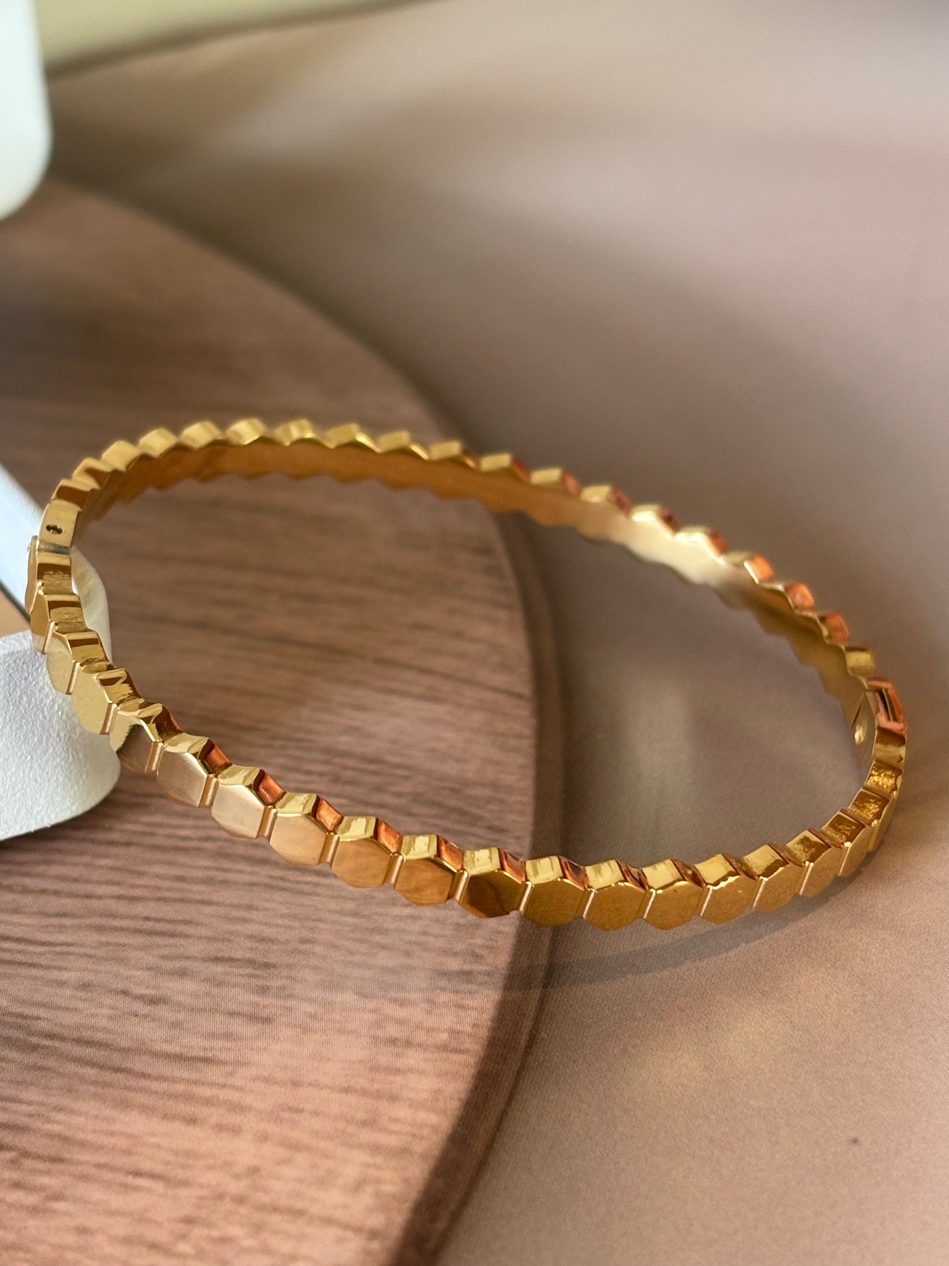This bangle-style bracelet kada features a magnetic clasp and anti-tarnish finish, making it ideal for everyday use. Its streamlined design appeals to discerning homemakers who appreciate low-maintenance yet elegant jewelry.