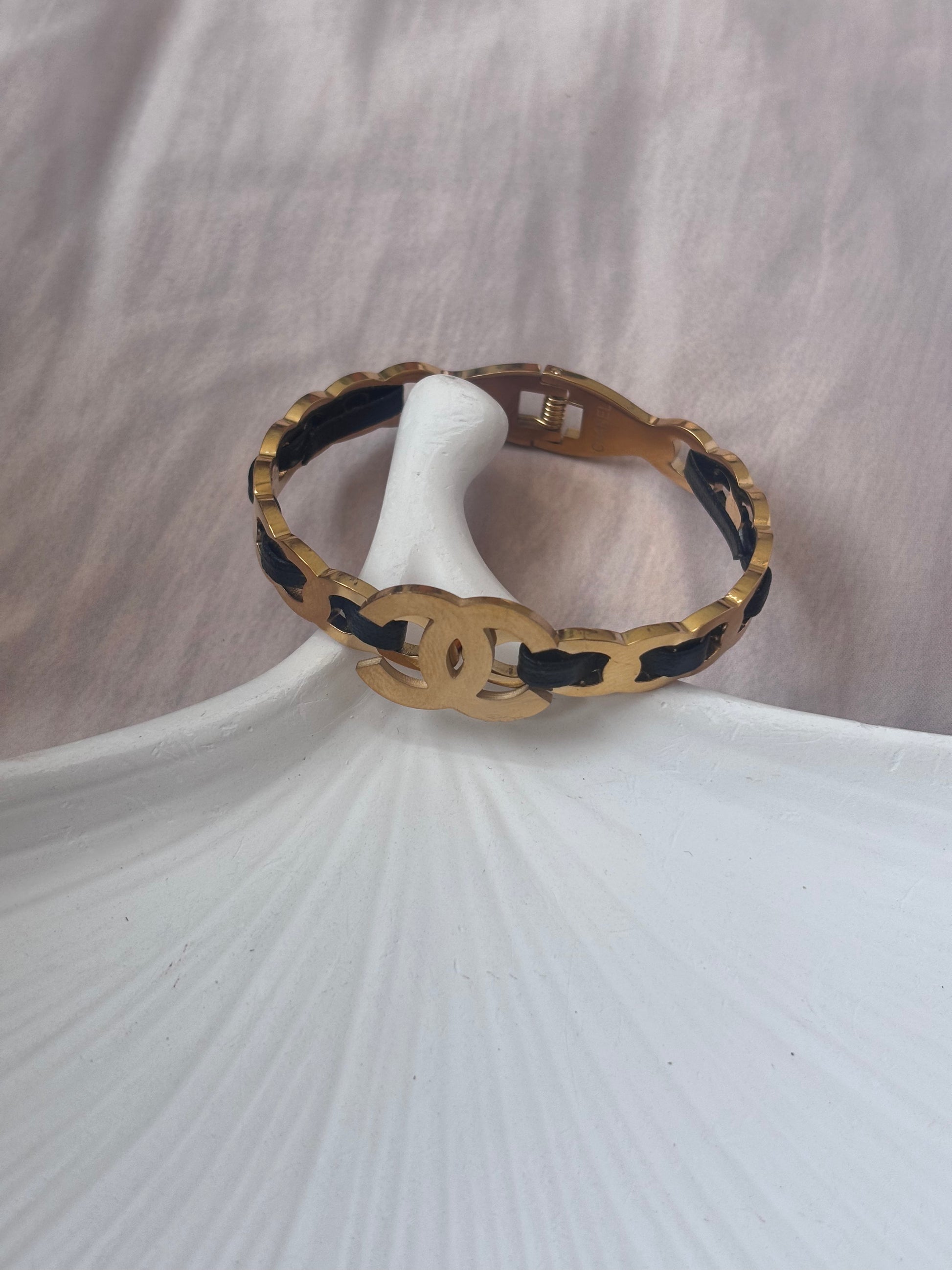 Black )( leatherette woven kada
