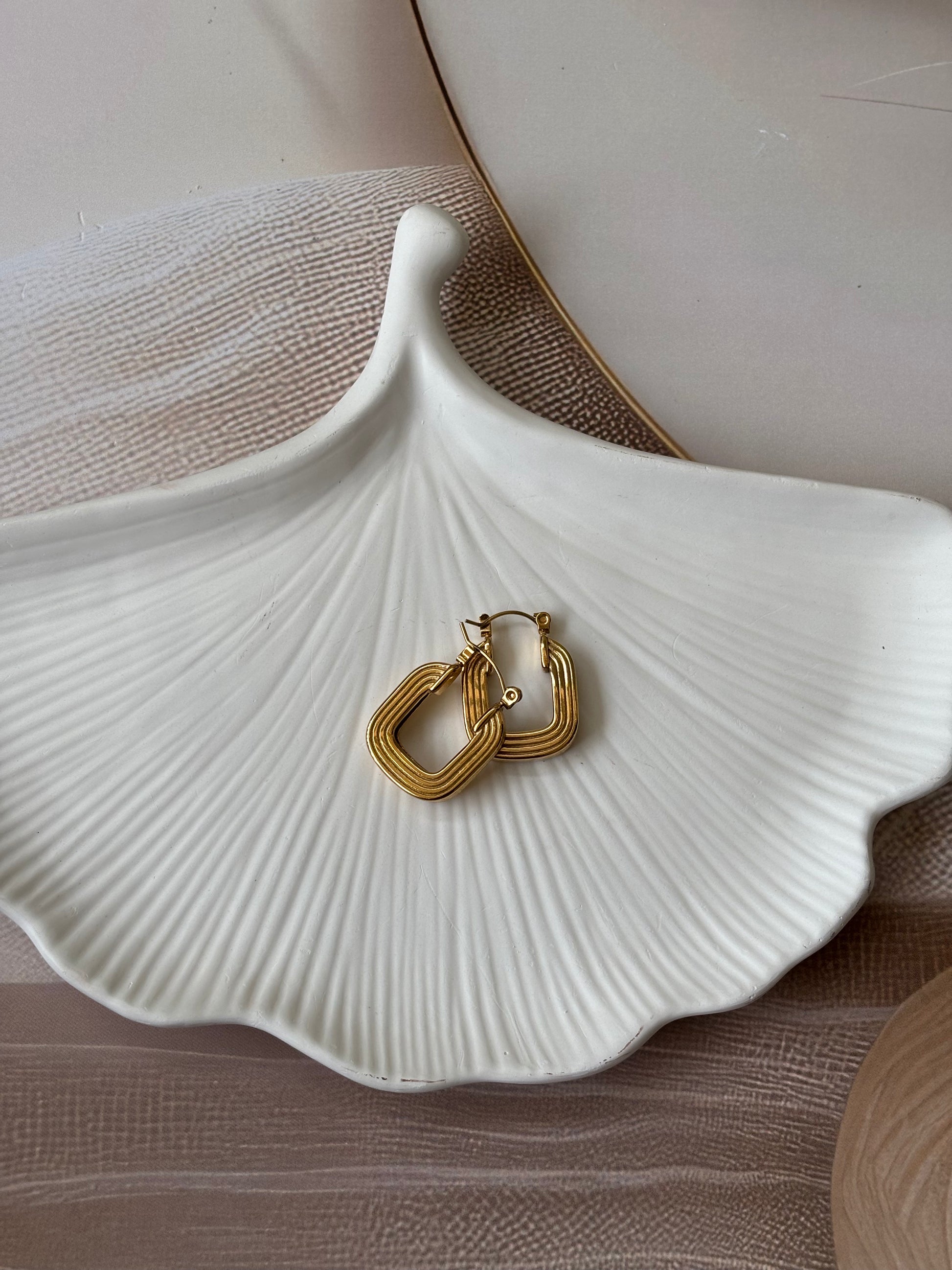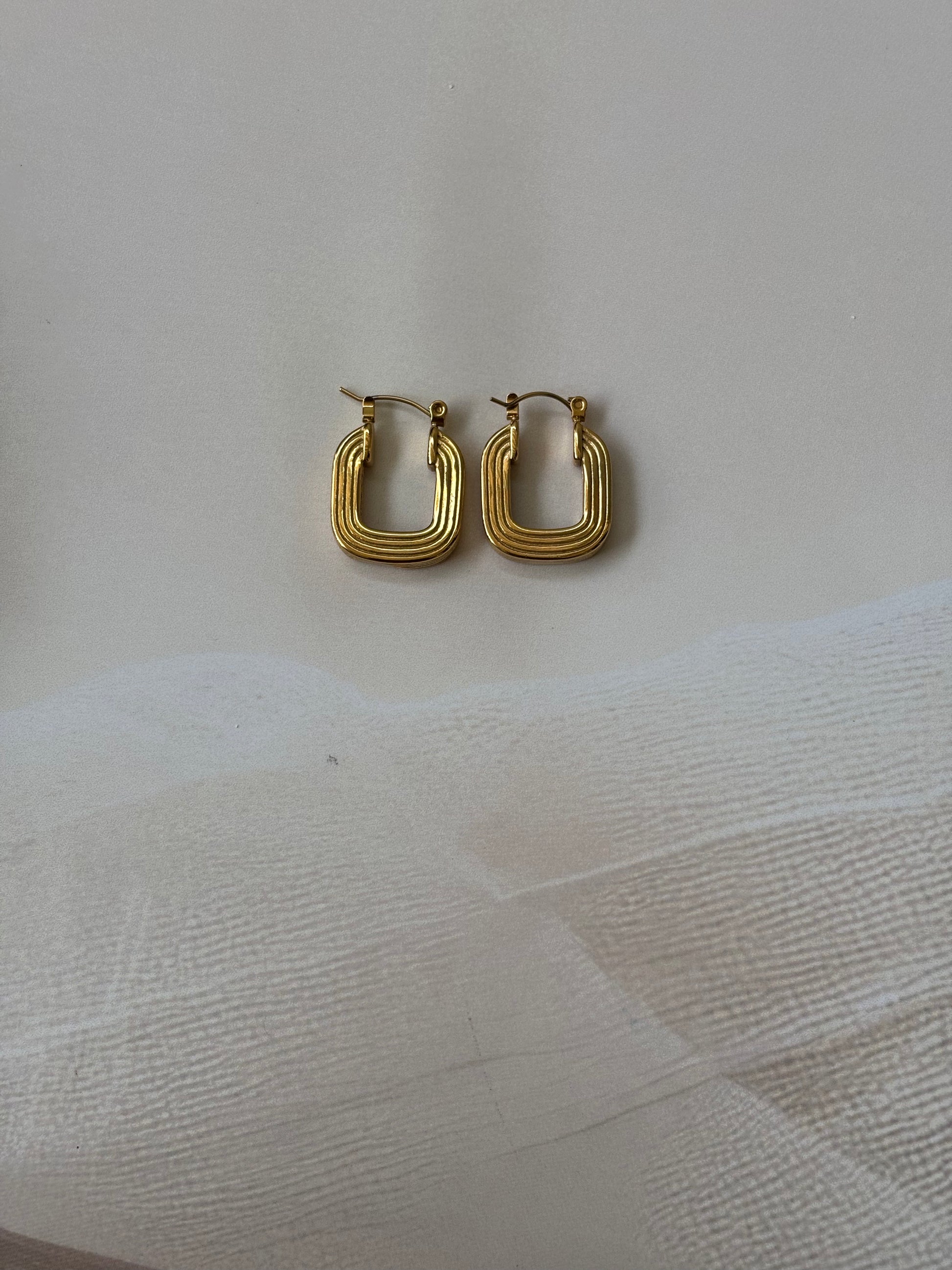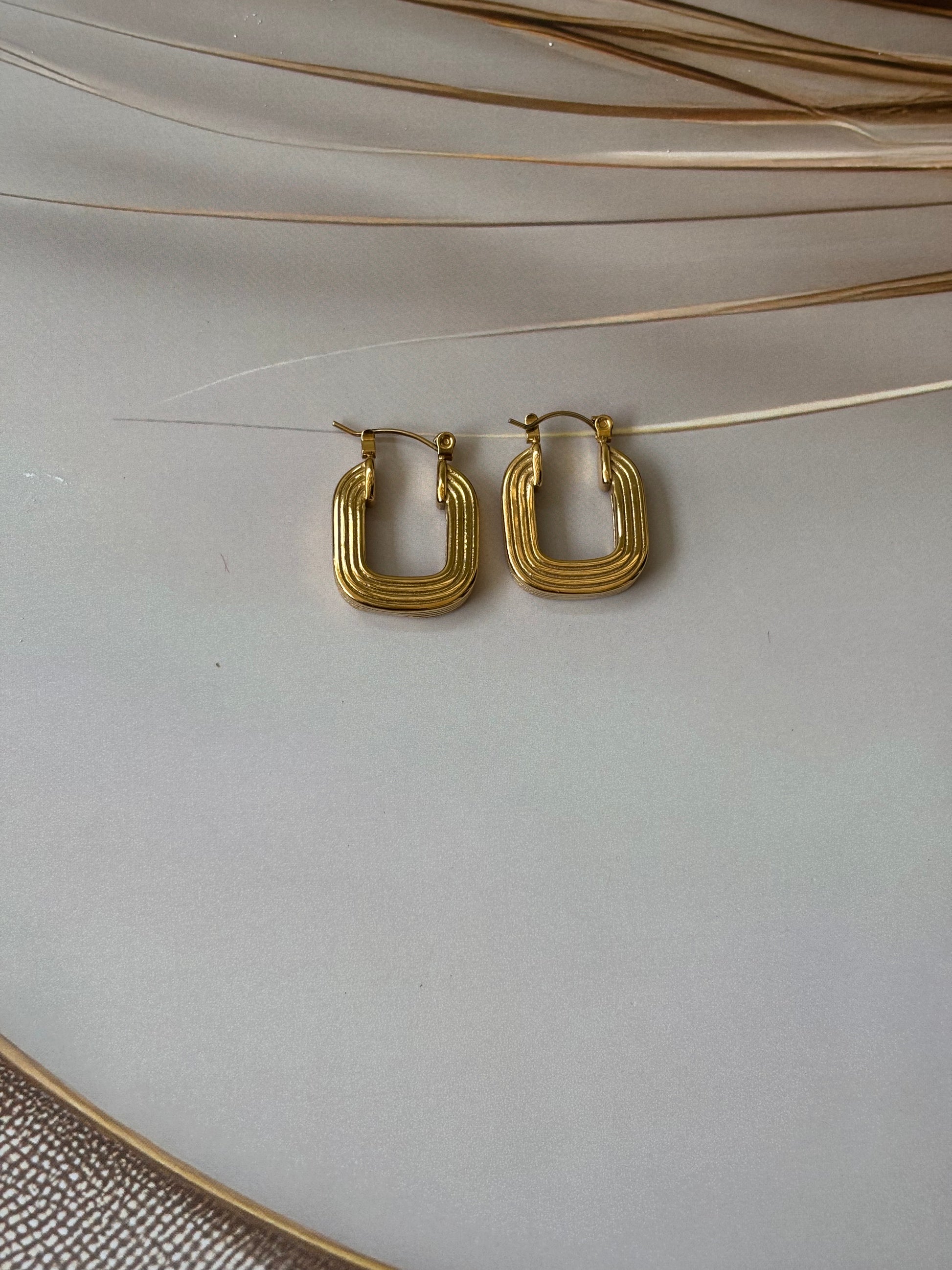 These concentric curvy square earrings feature a golden hue with an anti-tarnish finish, ensuring lasting shine. Crafted with premium quality materials, they are ideal for formal or semi-casual occasions such as meetings and conferences. Designed to be skin-friendly and sweat-resistant, they offer both comfort and durability.
