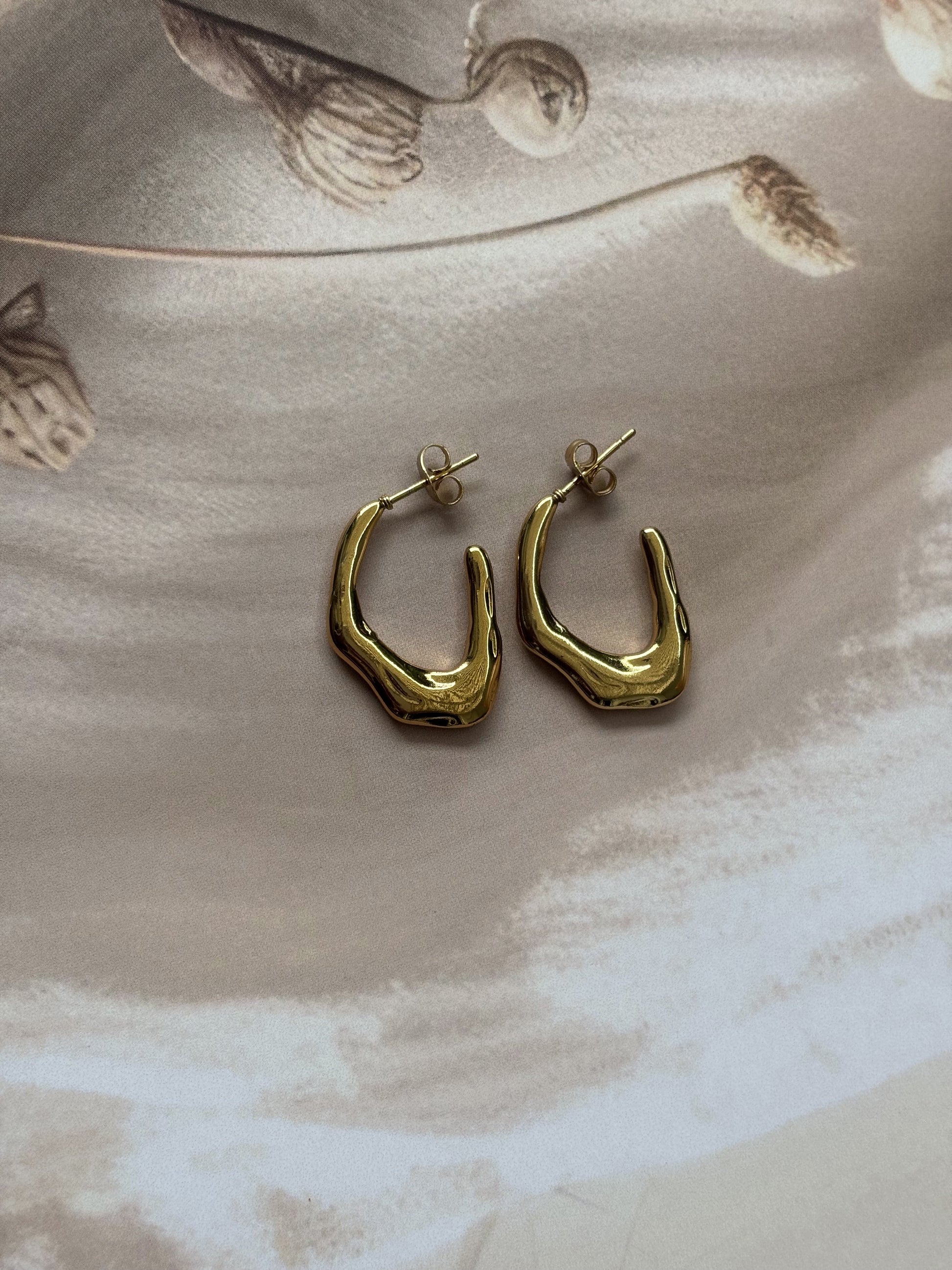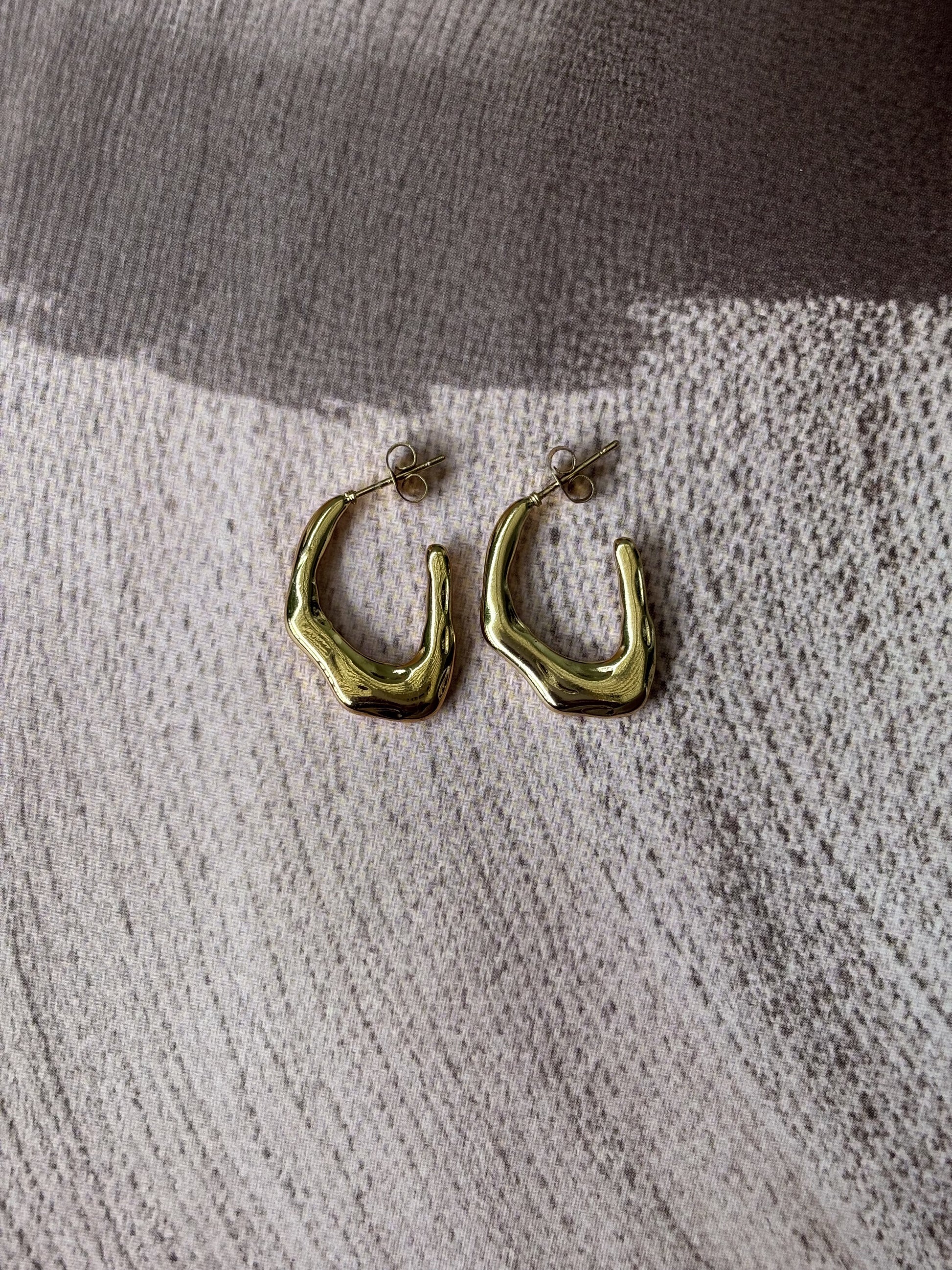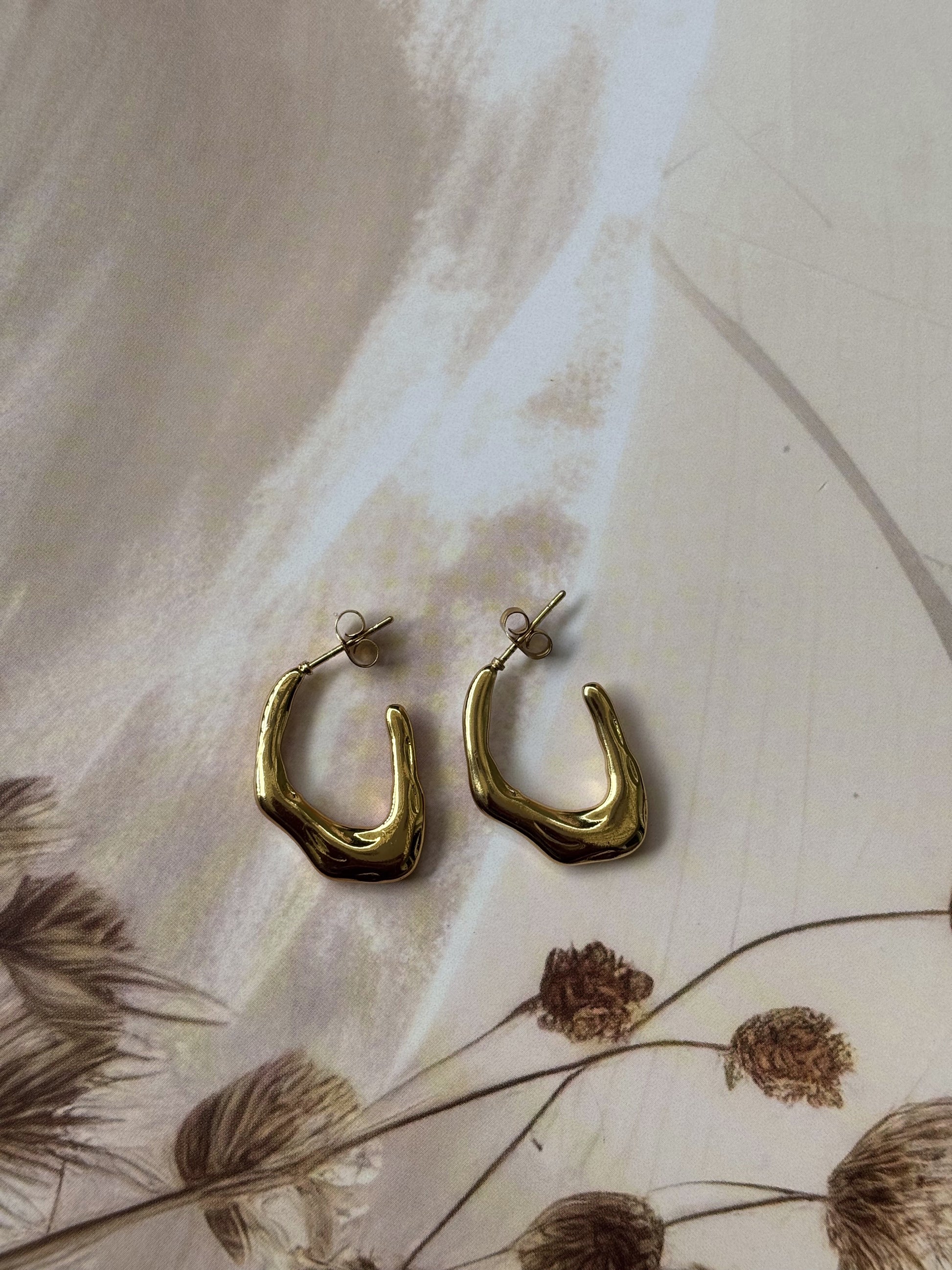 These anti-tarnish golden asymmetric half hoops combine style and trendiness, perfect for casual daily wear.