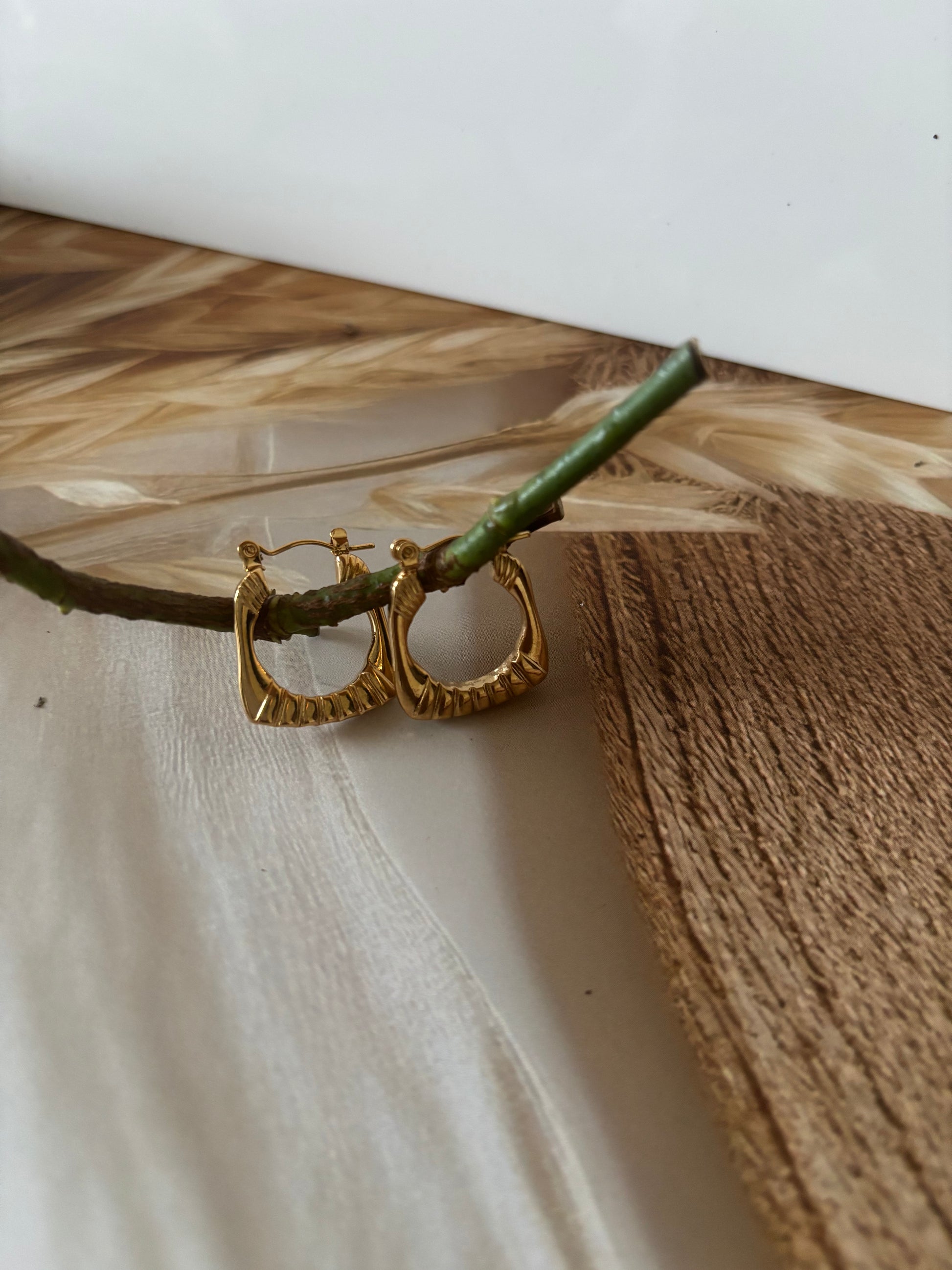 These golden square-shaped hoops combine timeless elegance with modern design, crafted to resist tarnishing for lasting shine. Perfectly suited for casual outings, pairing with kurtis, or daily wear, they add a sophisticated touch to any ensemble. Their unique box shape offers a distinctive style that elevates your look effortlessly.