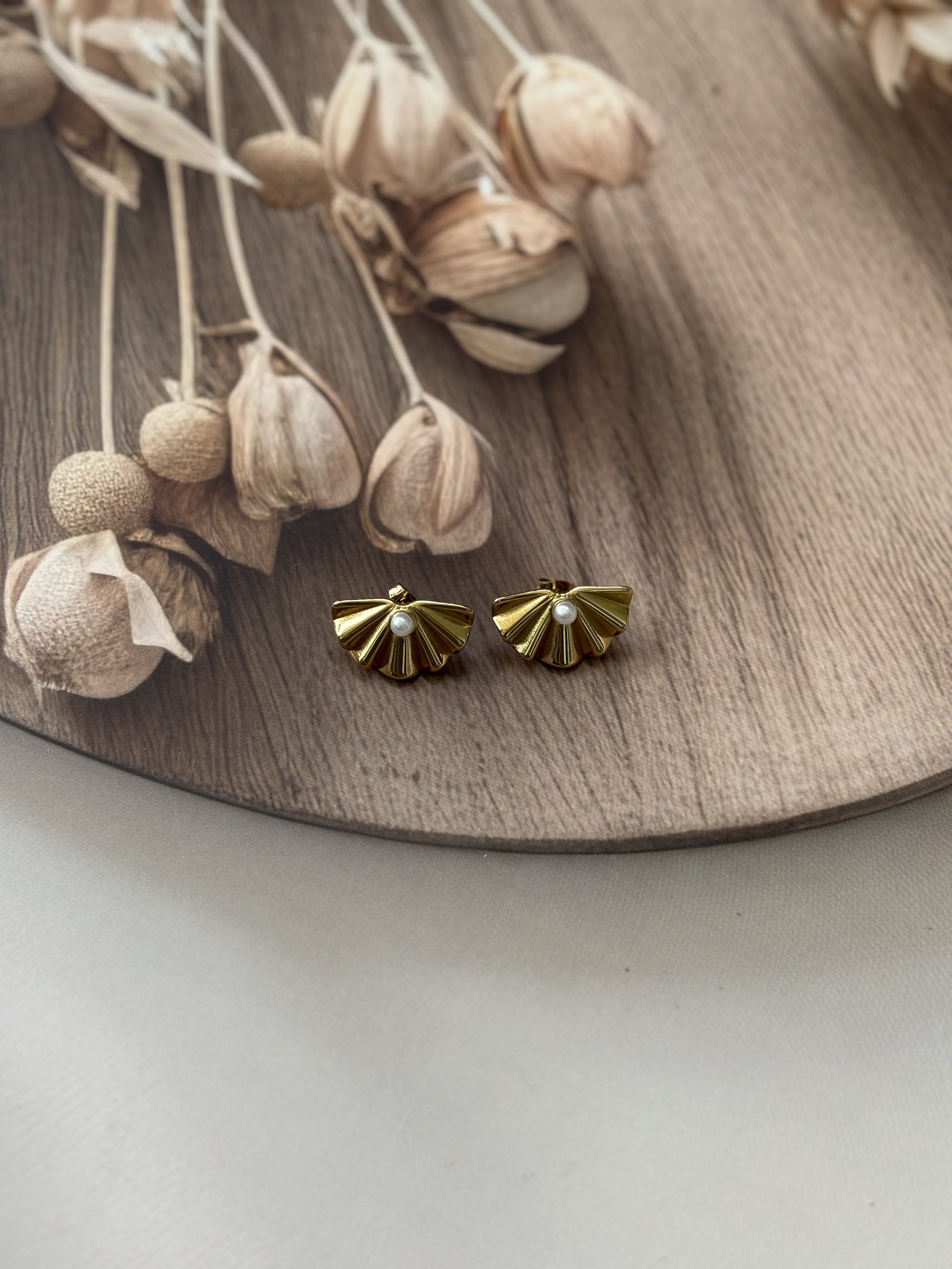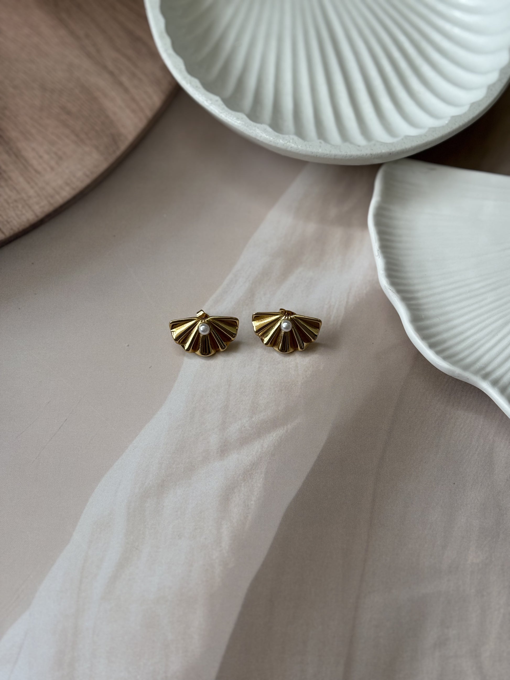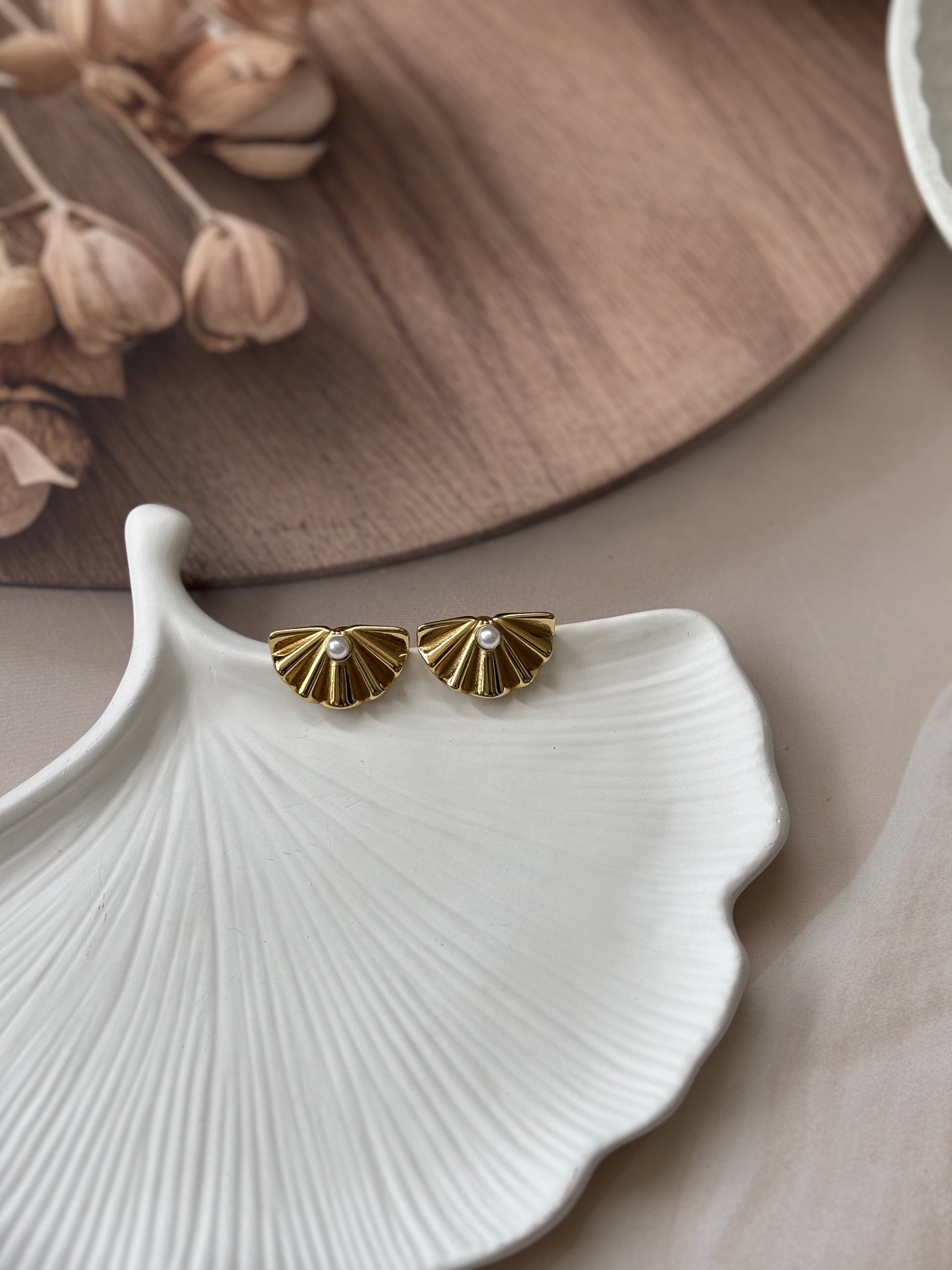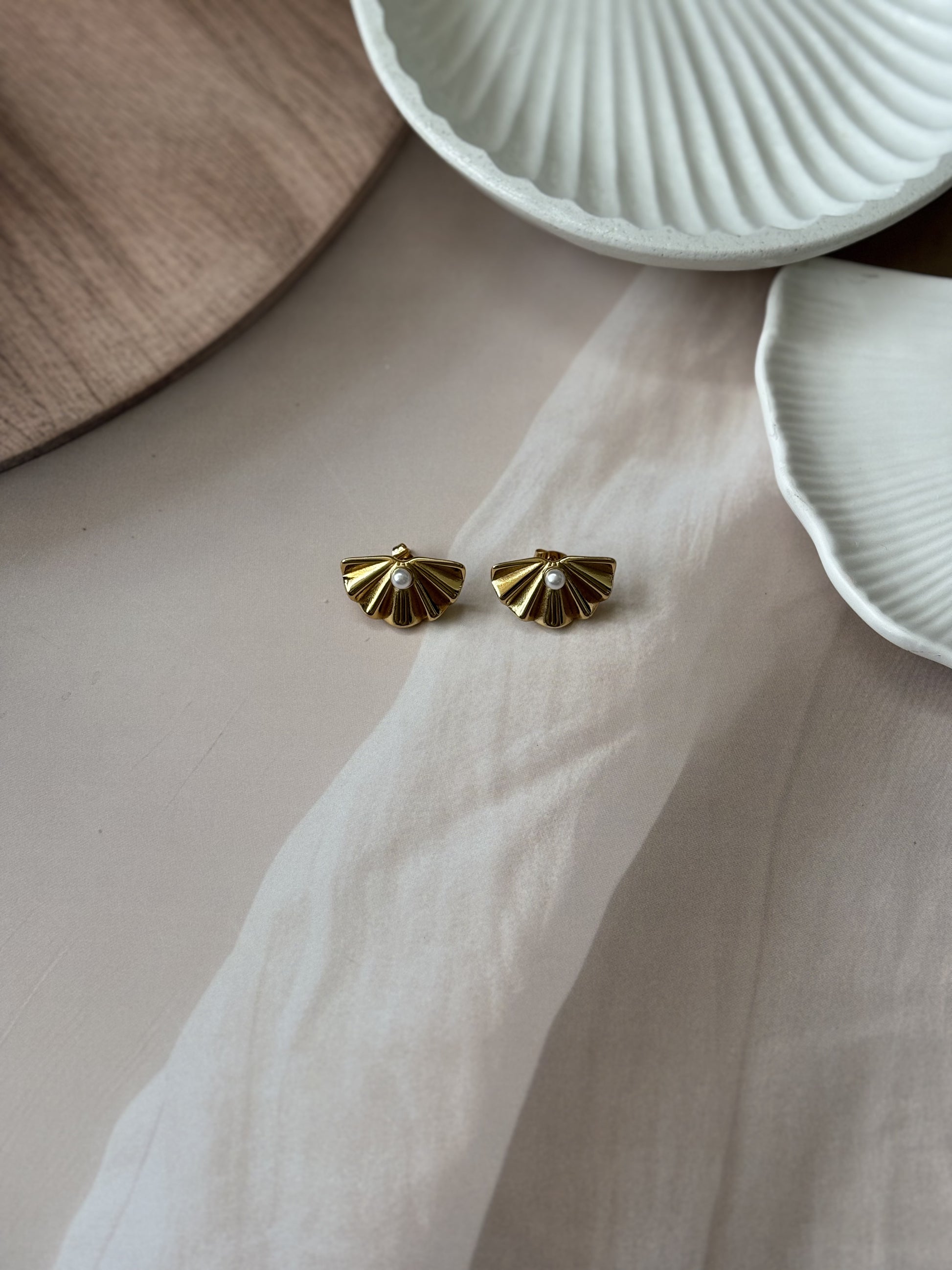 Golden Flat shell bead studs