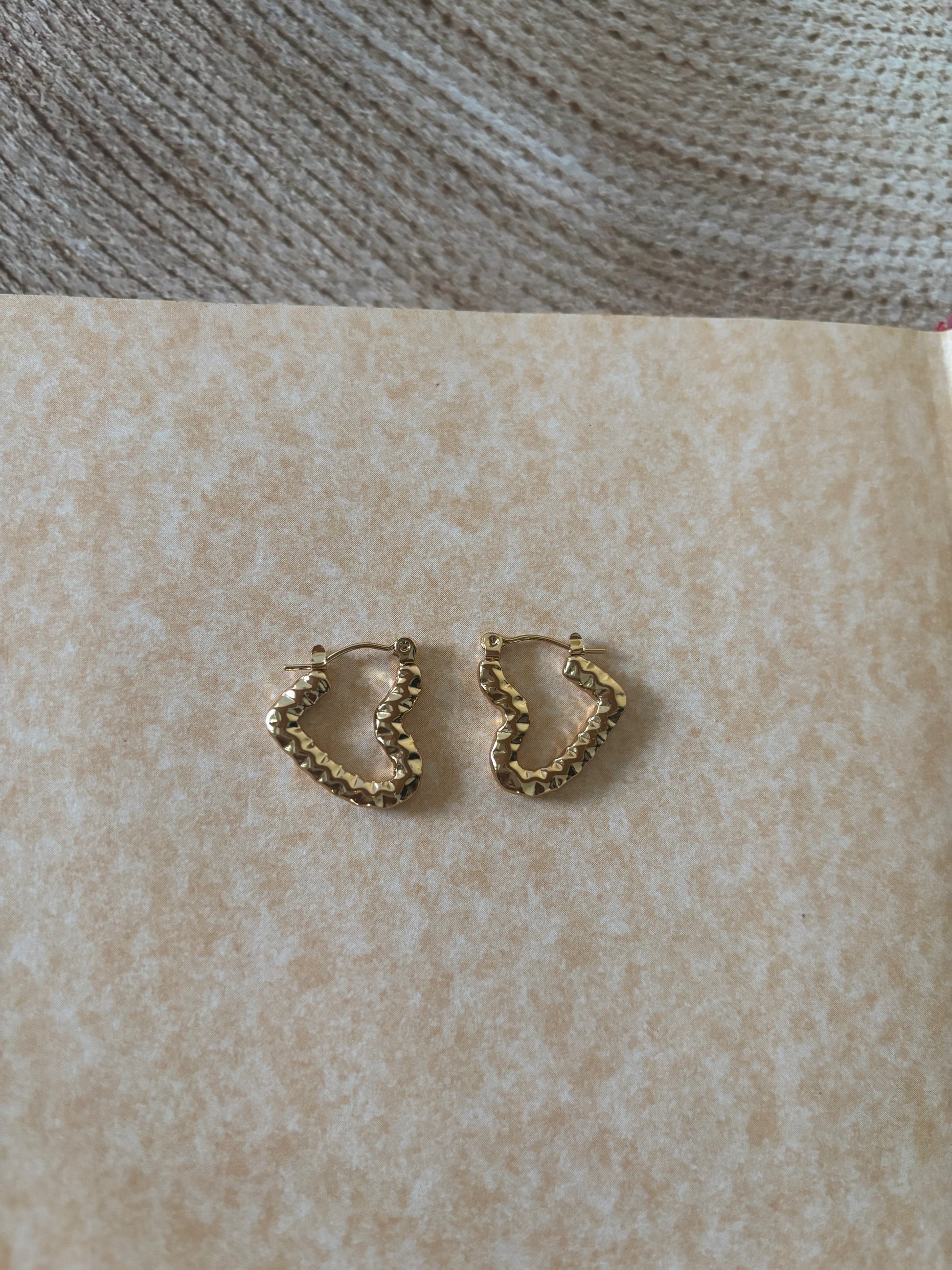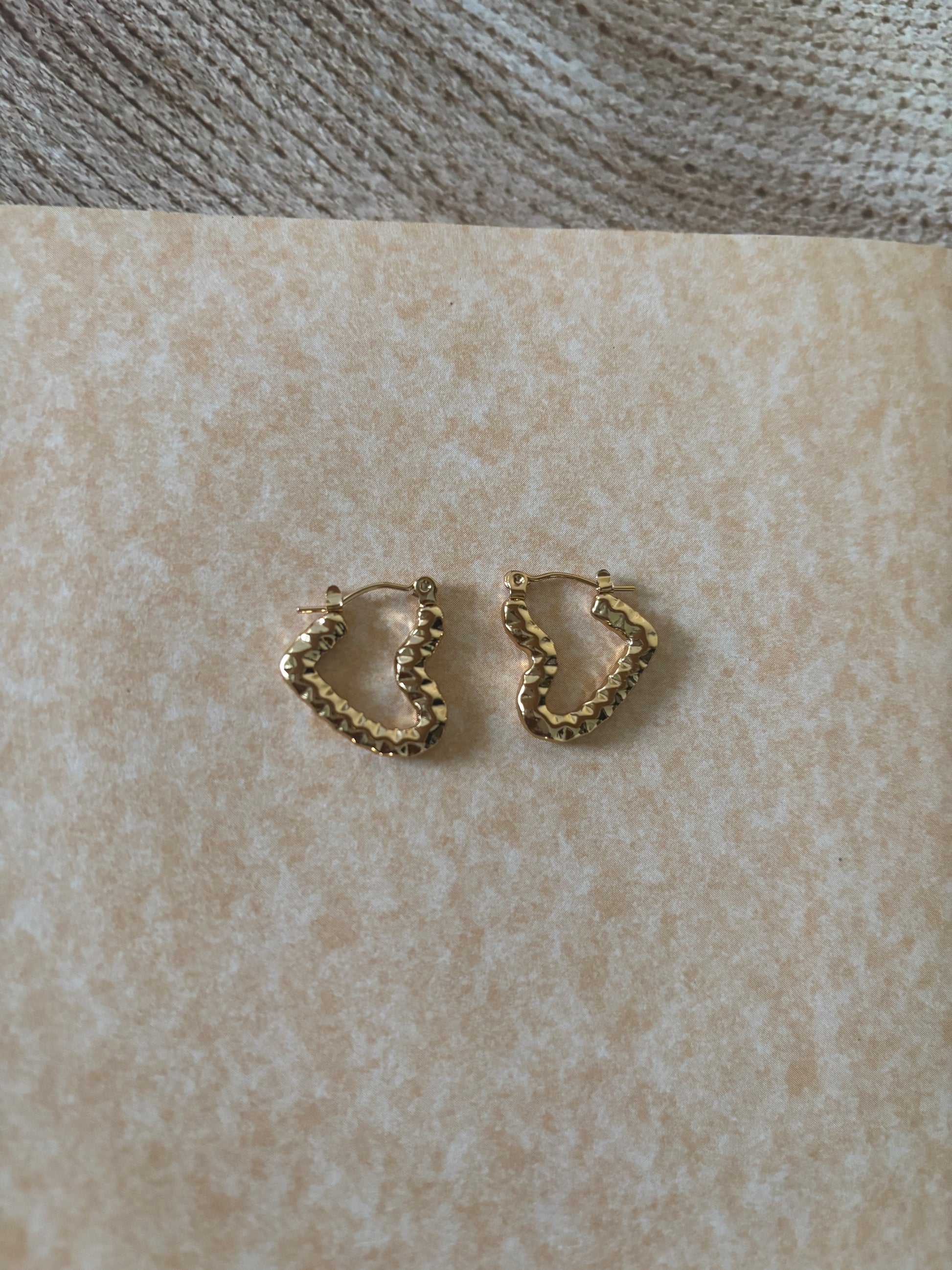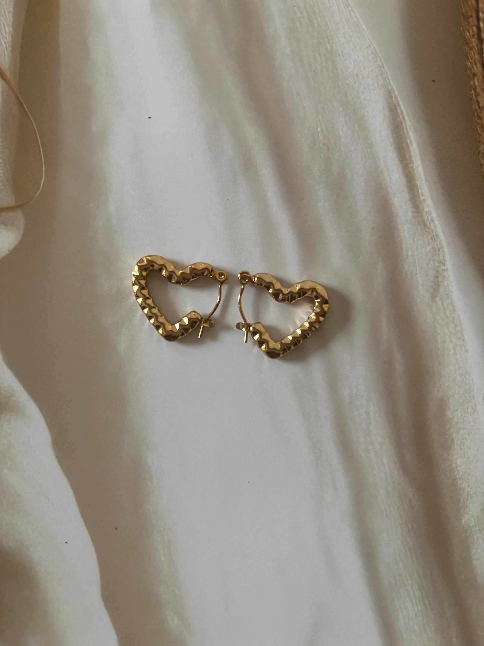 These Golden Heart2 Hoops combine timeless elegance with durable design. Crafted with an anti-tarnish finish, they maintain their radiant golden shine over time. The delicate heart shape adds a sophisticated touch, making them perfect for both everyday wear and special occasions. Expertly designed to complement any outfit, these hoops offer lasting beauty and refined style.