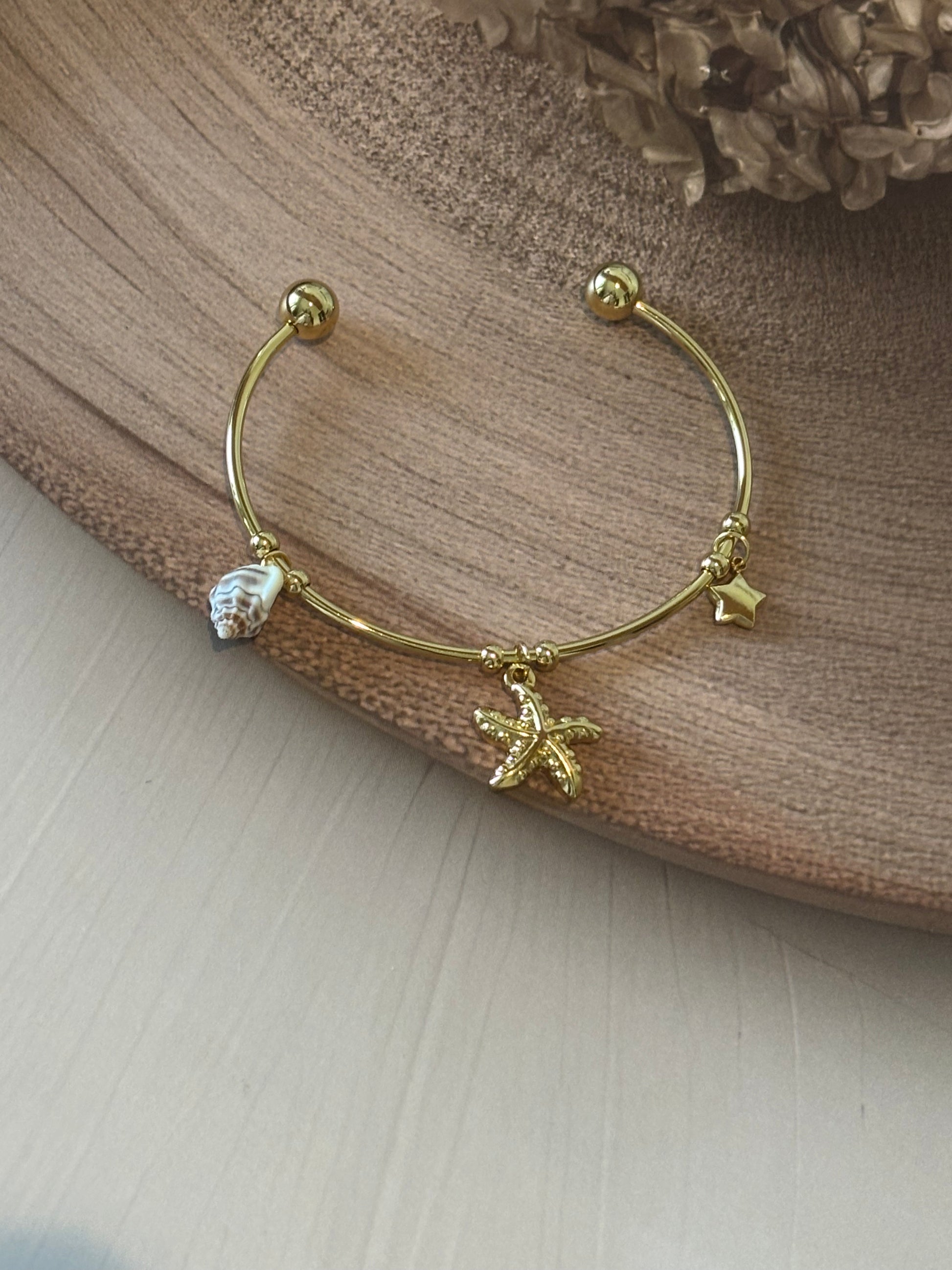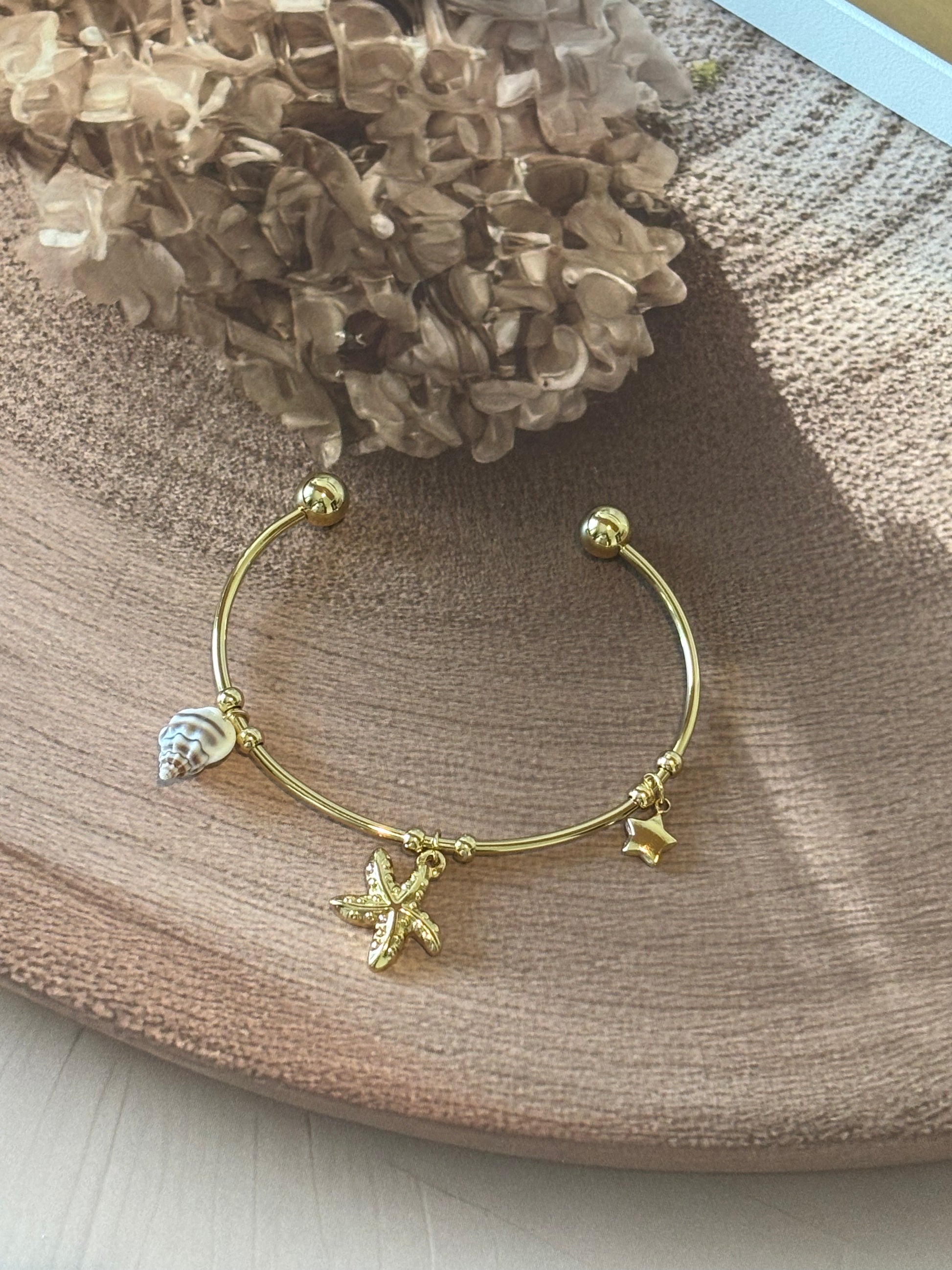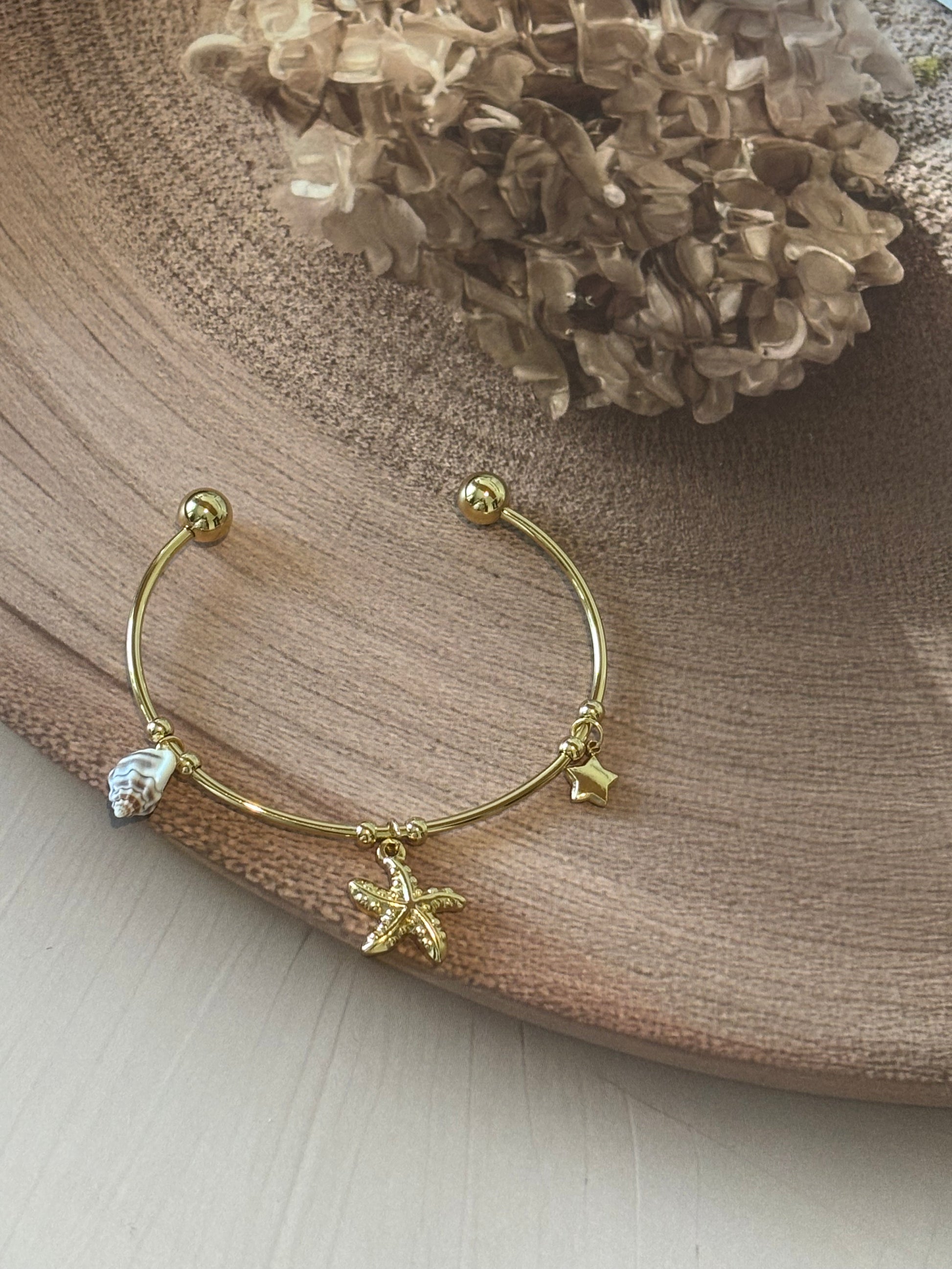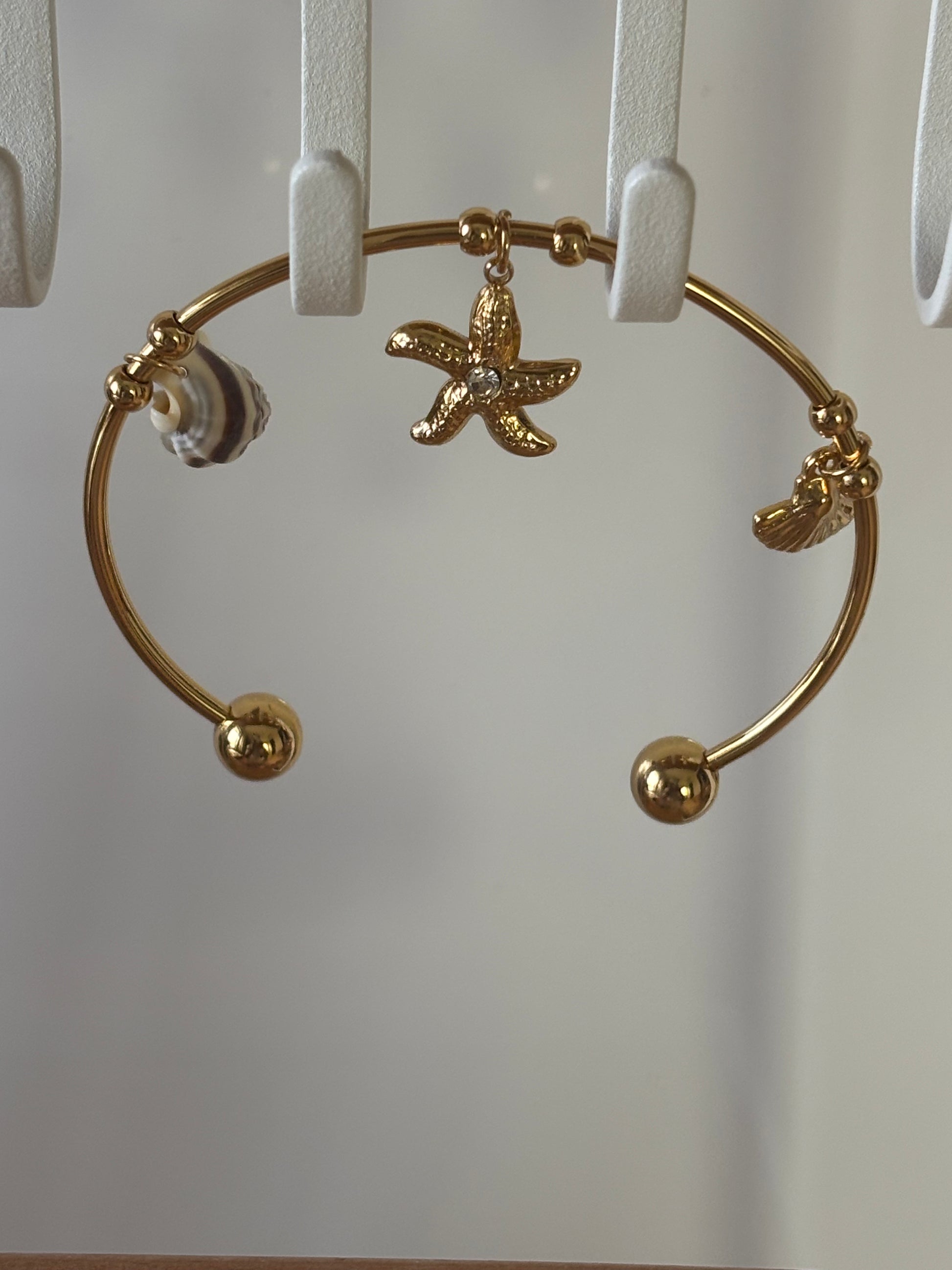 This elegant Golden Star shell adjustable bracelet features an anti-tarnish finish, ensuring lasting shine and durability. Designed as an adjustable kada, combining style with practicality for everyday wear or special occasions.