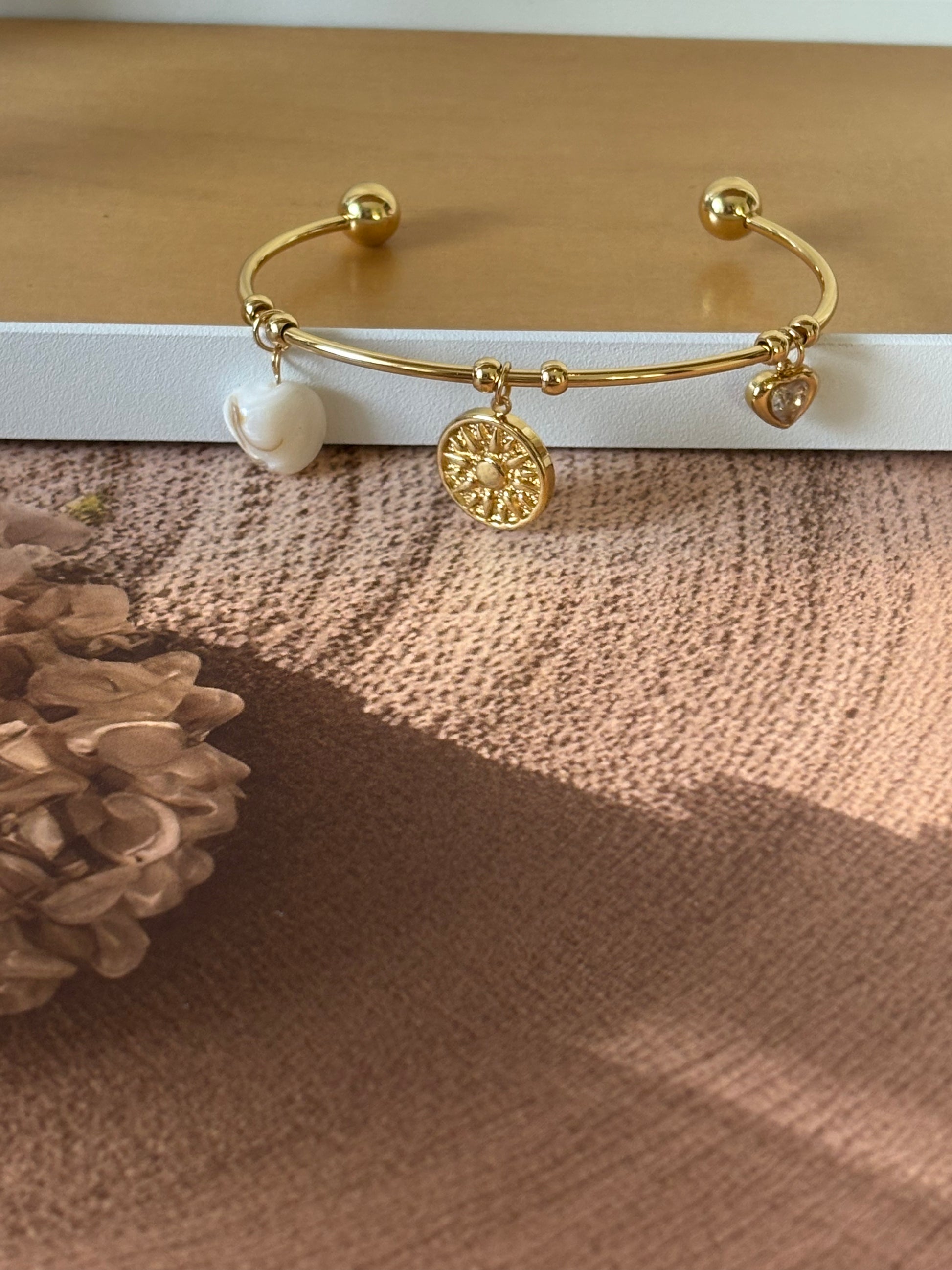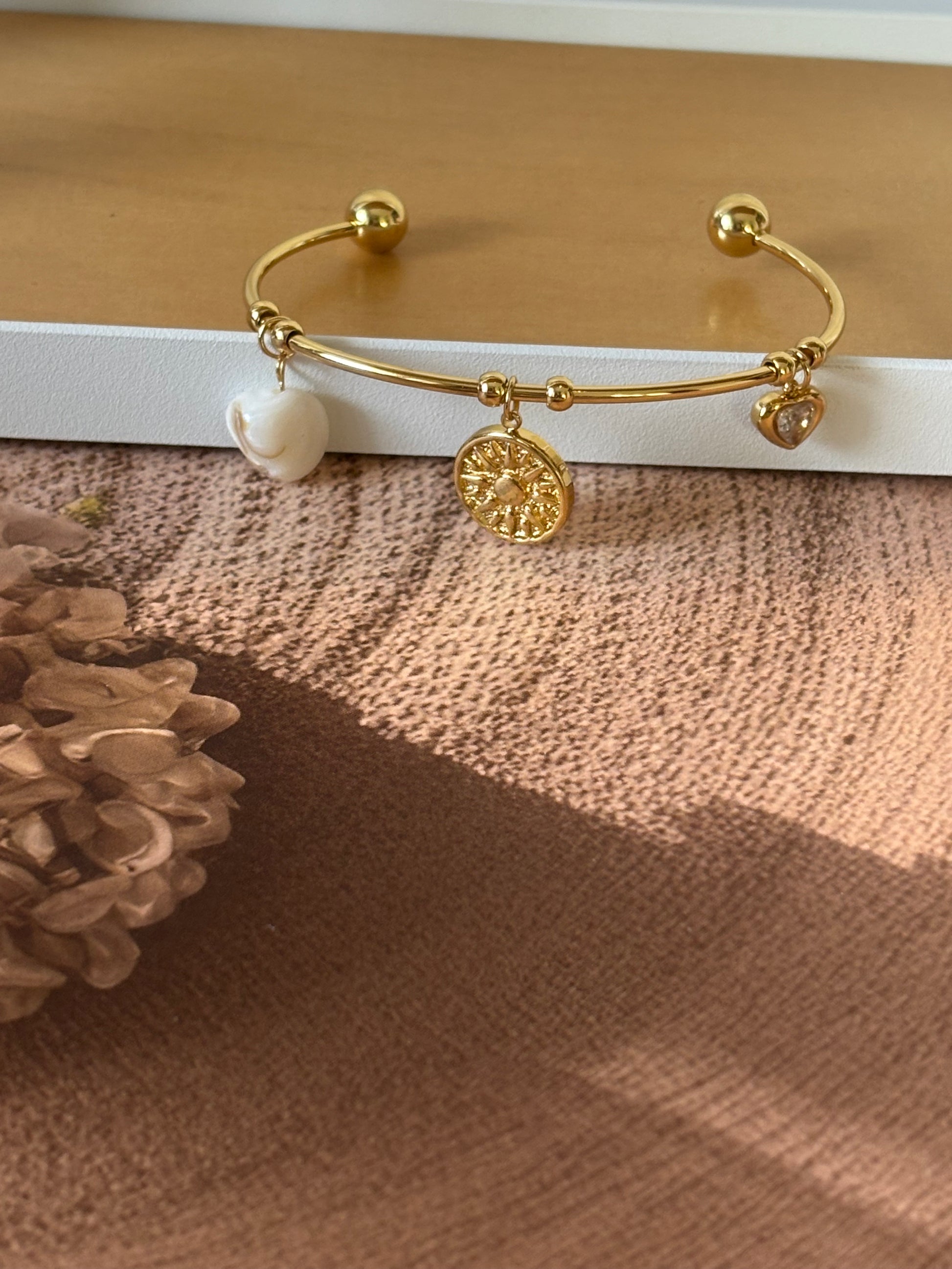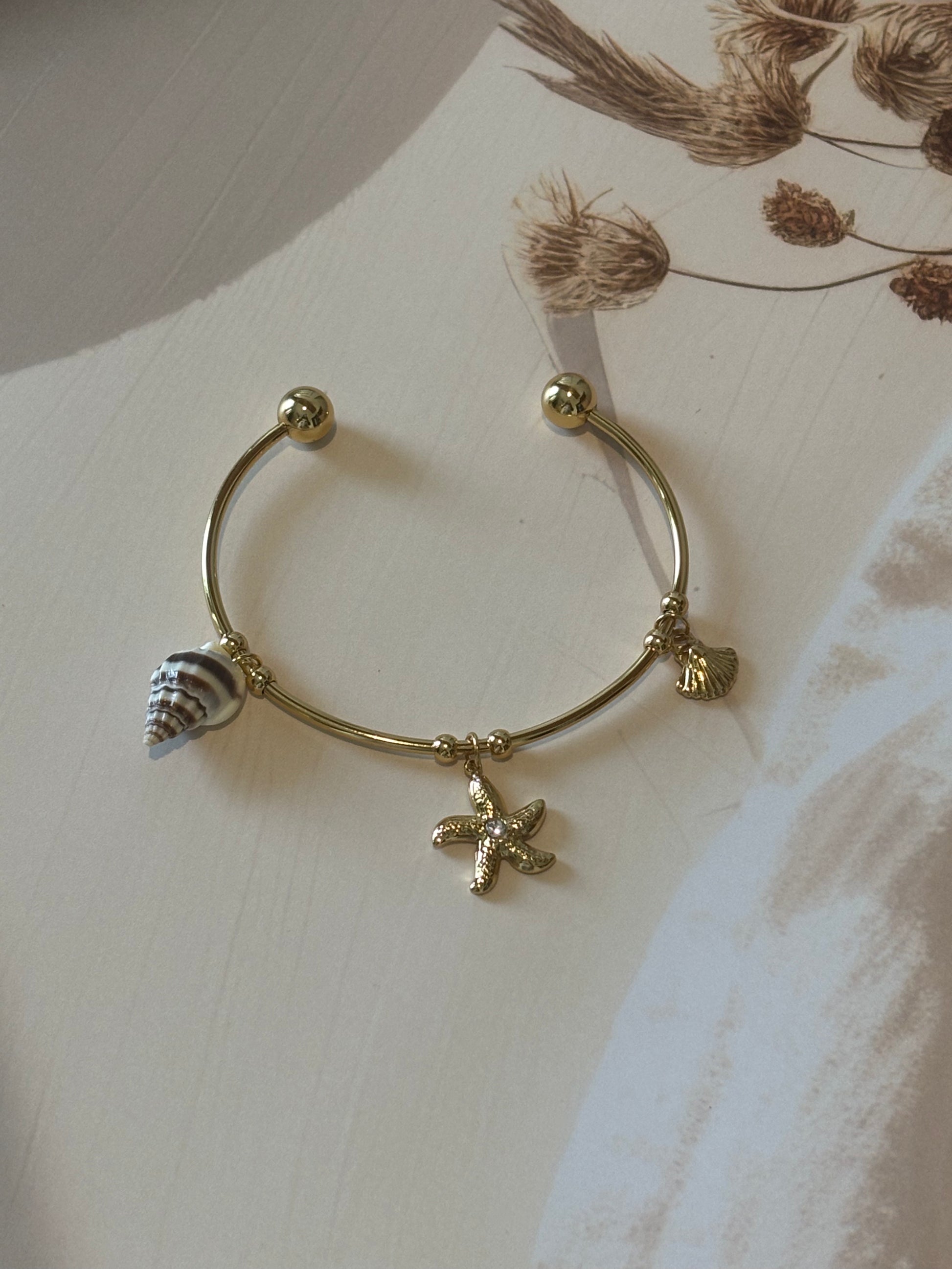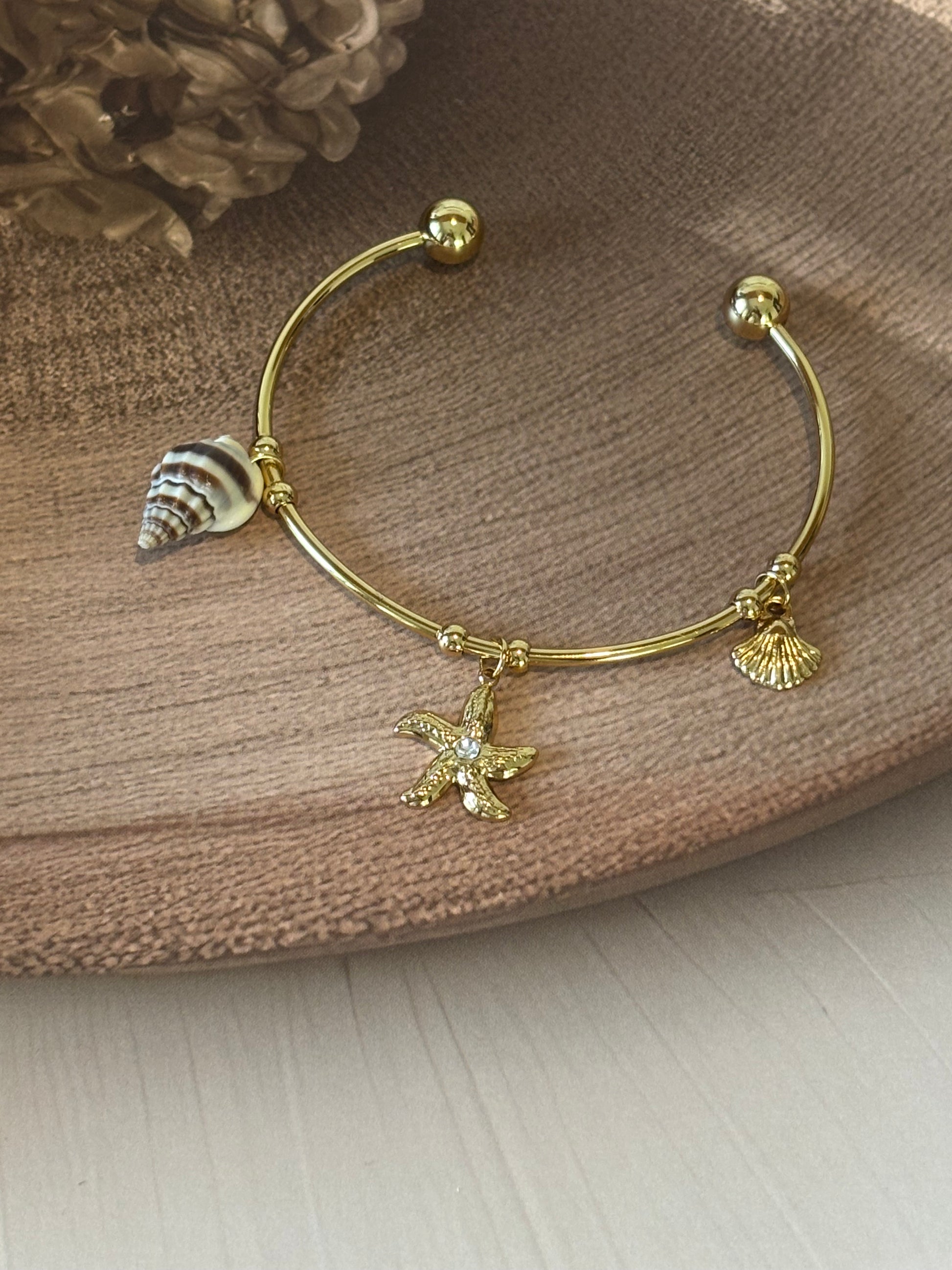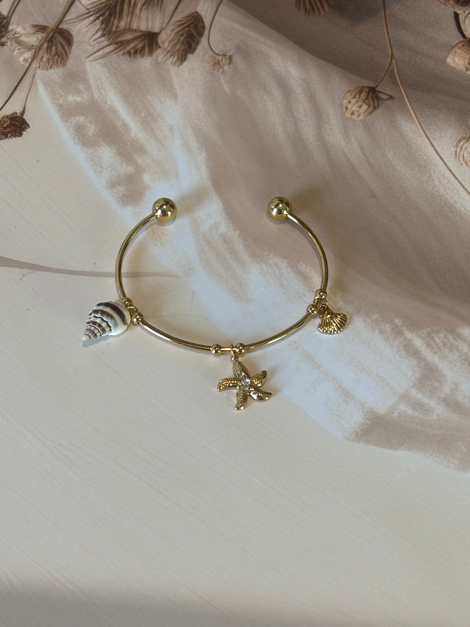 This elegant Golden Star shell adjustable bracelet features an anti-tarnish finish, ensuring lasting shine and durability. Designed as an adjustable kada, combining style with practicality for everyday wear or special occasions.