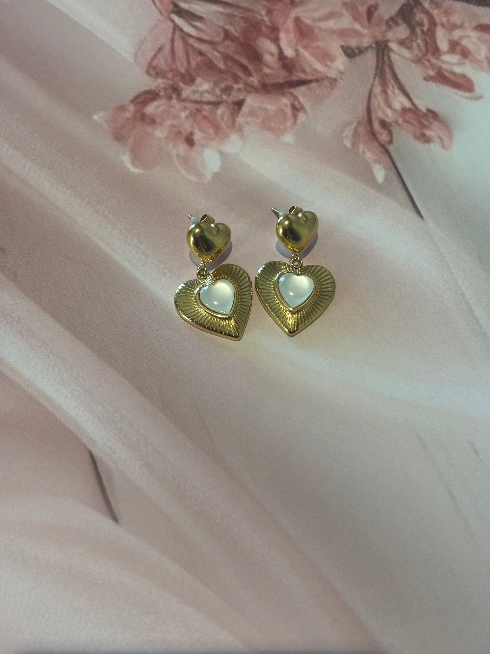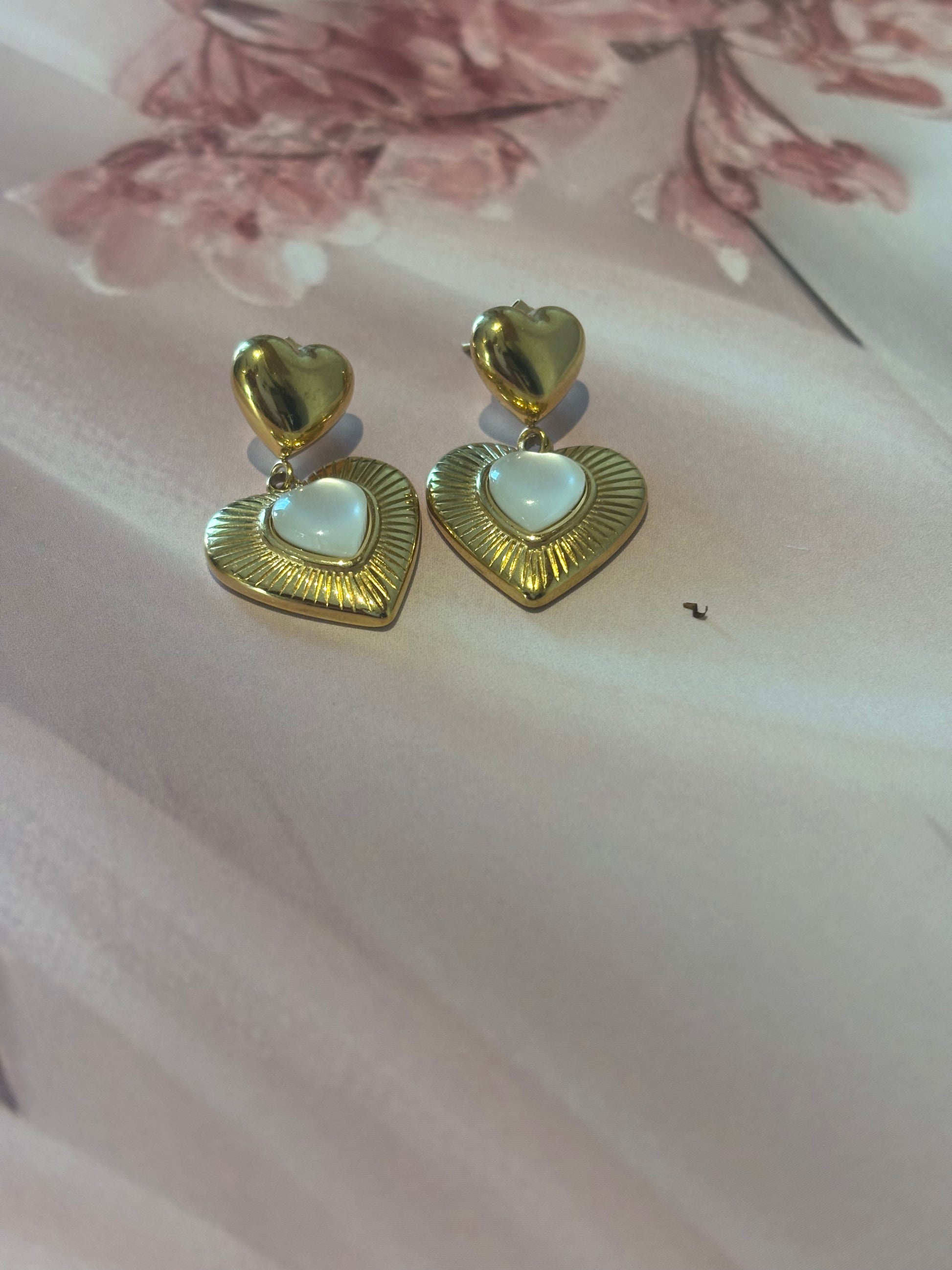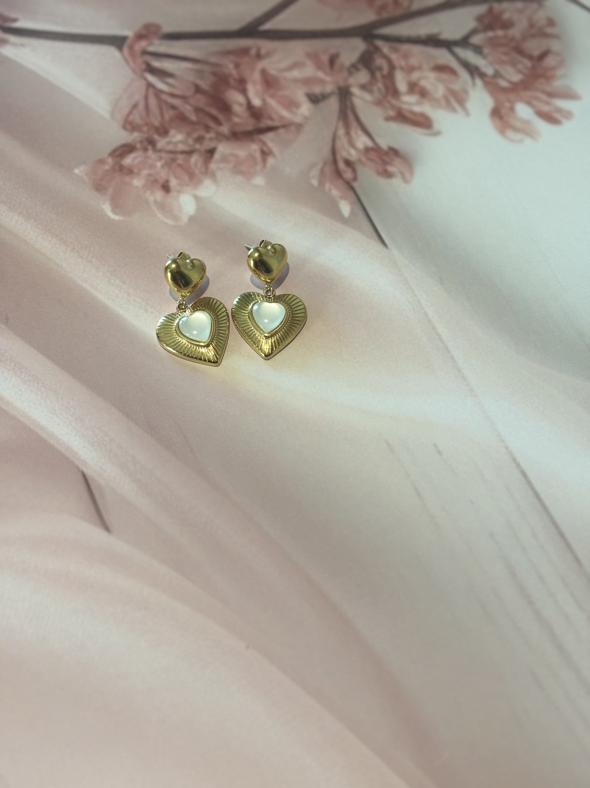 These golden-colored, anti-tarnish double heart earrings feature elegant white Monalisa stones, combining durability with timeless style. Perfect for coffee dates, movie nights, outings, and parties, they effortlessly complement casual wear and kurtis, adding a refined touch to your ensemble.