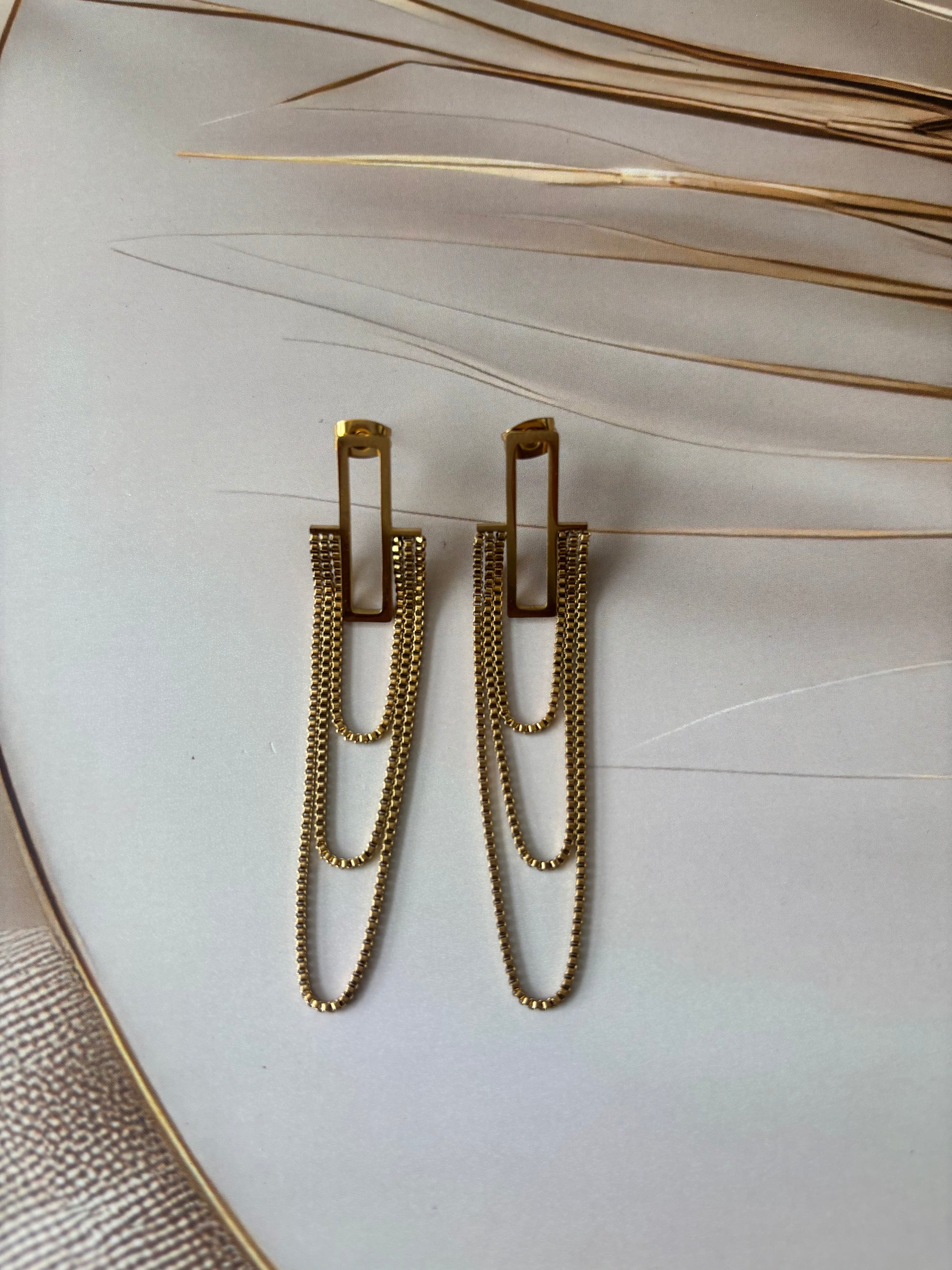 These Rectangle Dangler long earrings feature an elegant fine bead tassel design and are crafted to be lightweight and skin-friendly. Their antitarnish quality ensures lasting shine, making them an excellent choice for partywear.