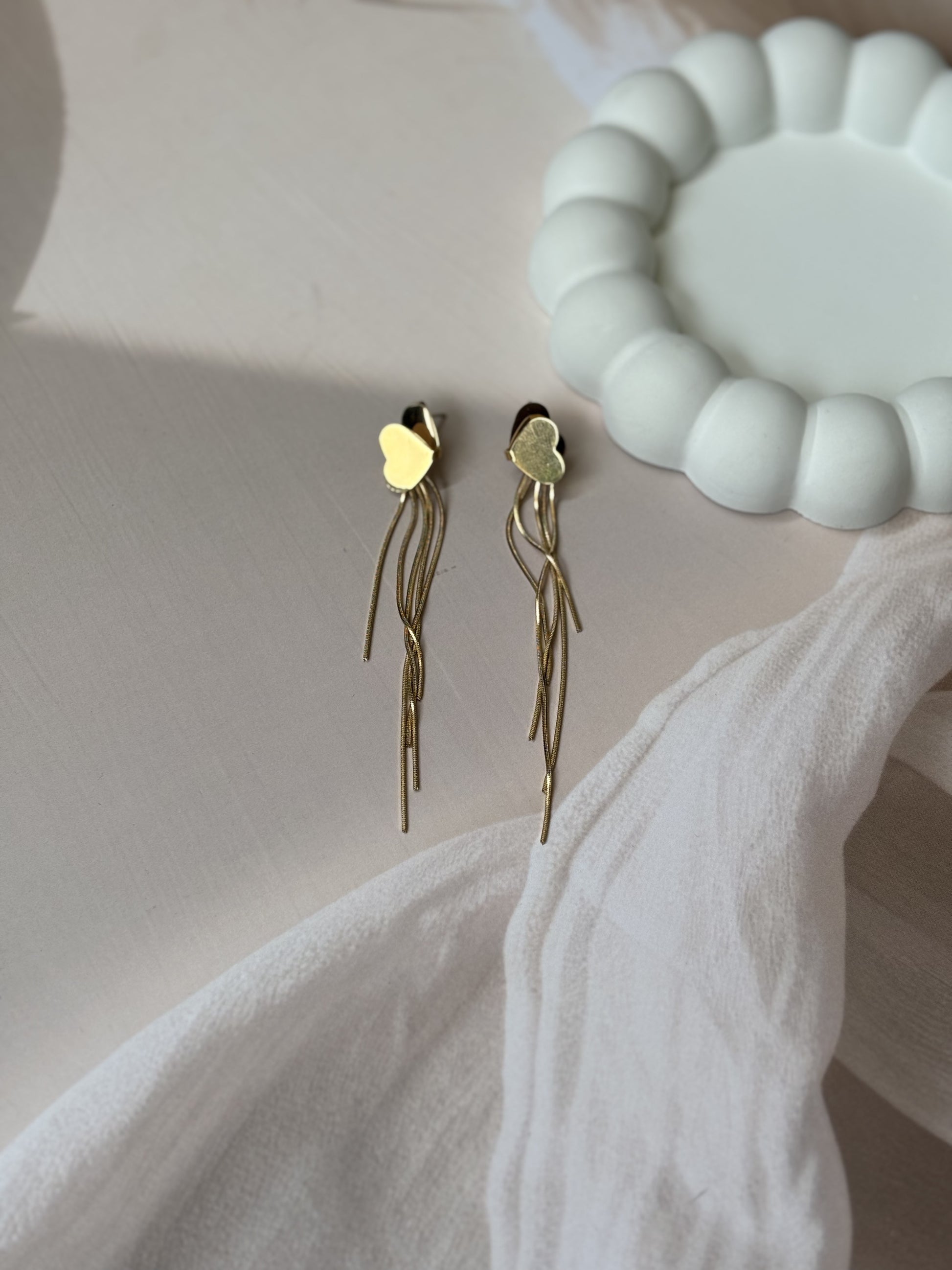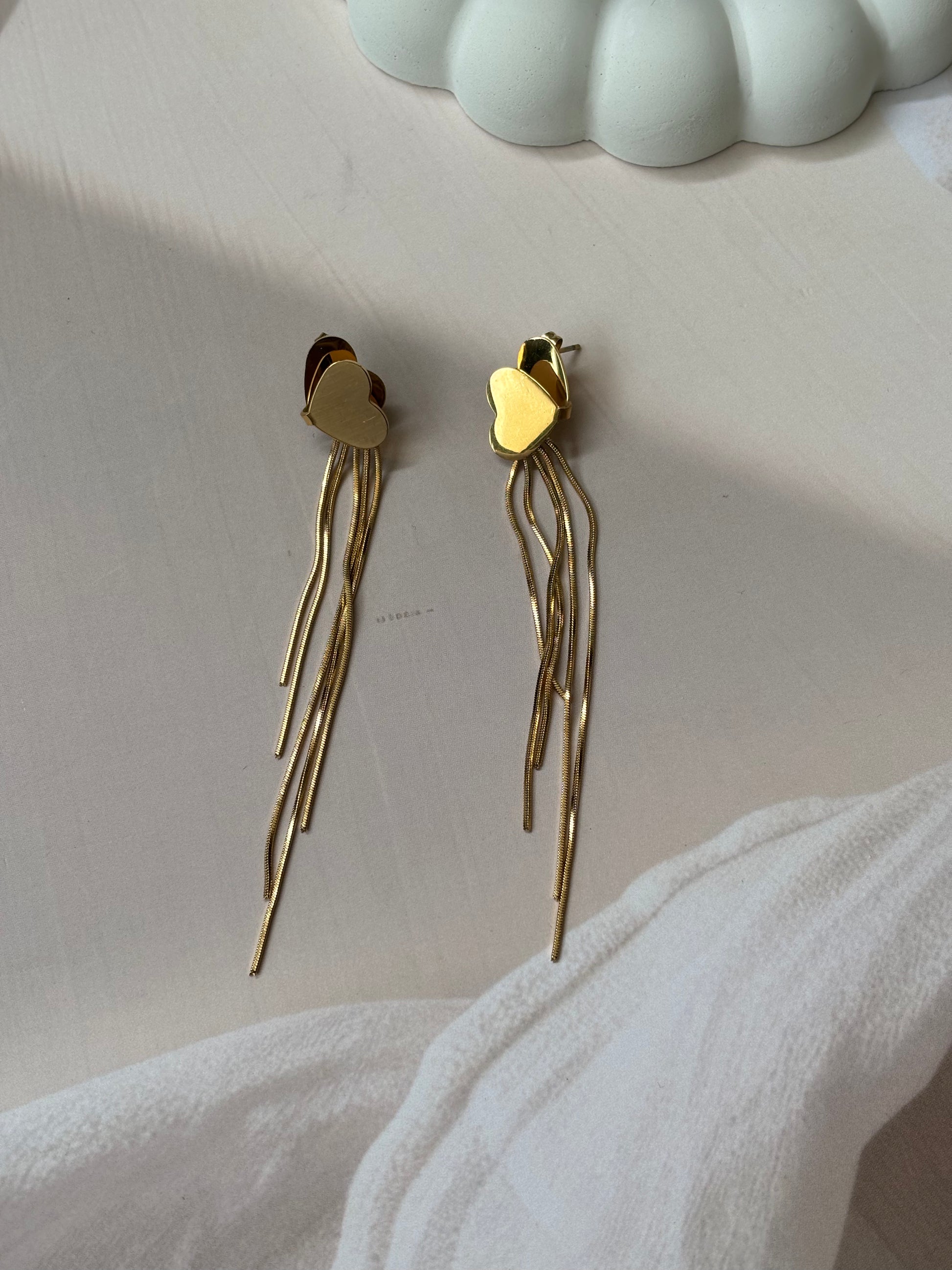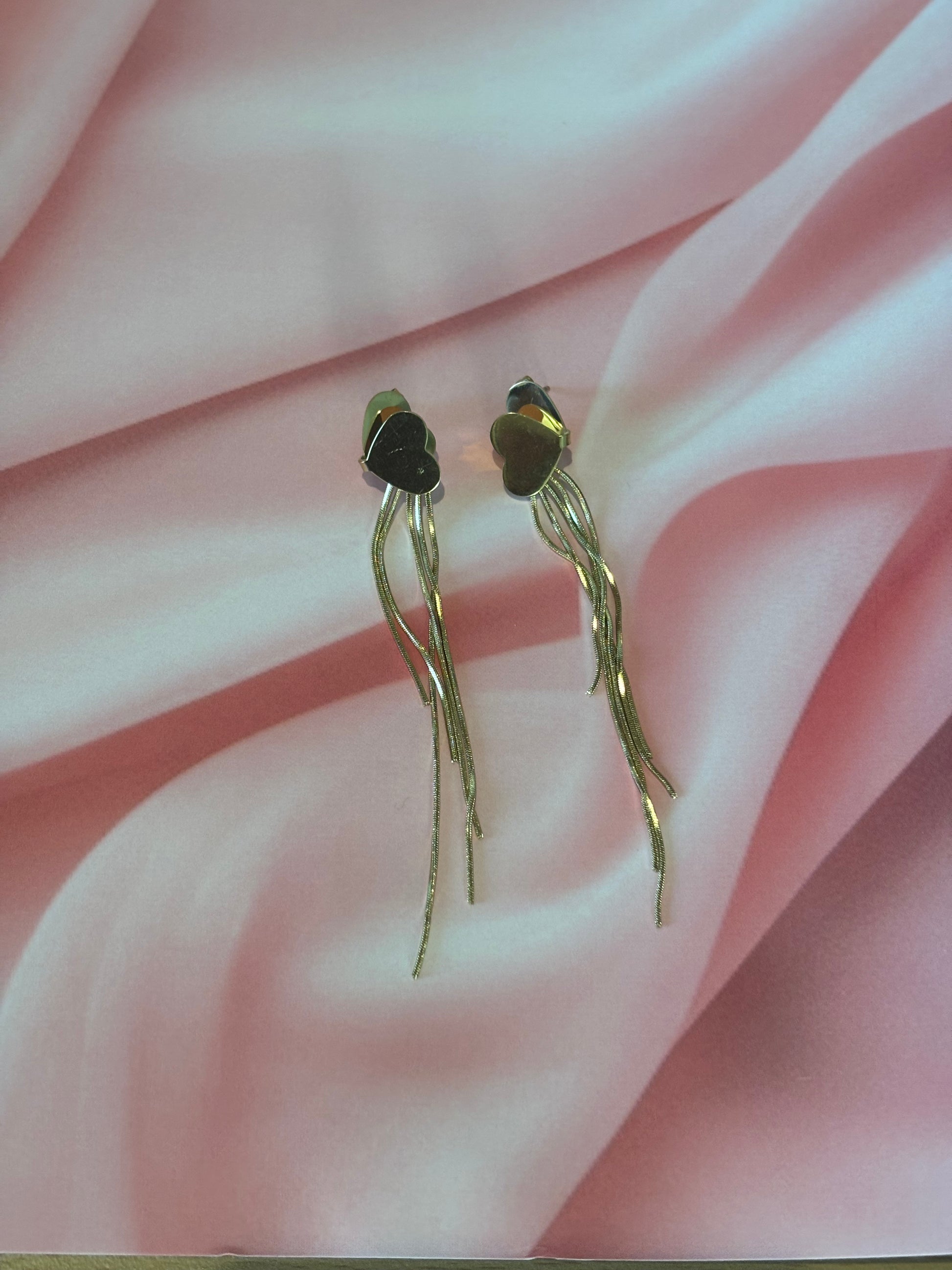 Thread heart long tassel earrings